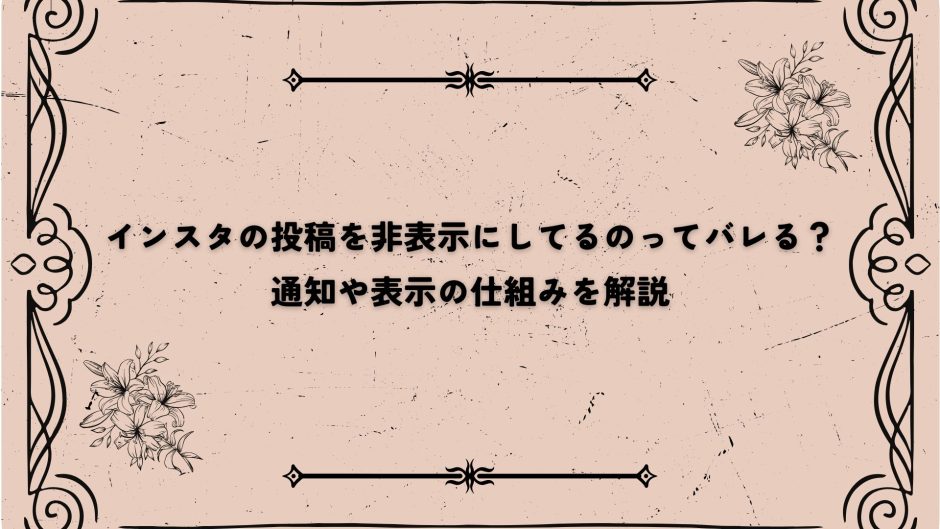「インスタで投稿を非表示にしたら、相手にバレるのかな…?」──そんな不安、感じたことはありませんか?