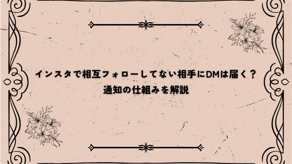 Instagramを使っていて、「この人にちょっとDM送りたいな……」と思ったとき、相手と相互フォローしていなかったらどうなるんだろう?と心配になることがありますよね。特に初めての相手や、フォローだけしている「片思い状態」のときは、DMが届くのか、通知されるのか、いろいろと気になるものです。