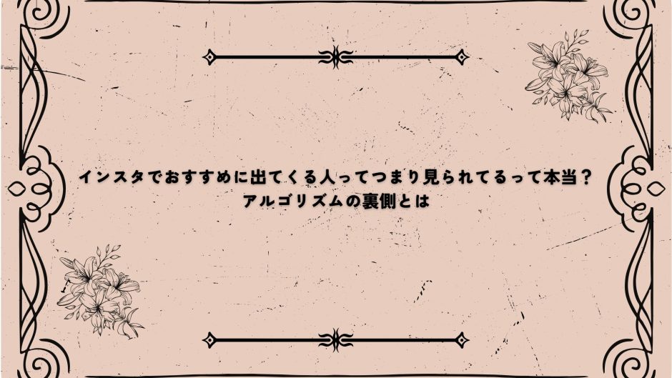 インスタグラムで「おすすめに出てくる人」って、ふとした瞬間に「えっ、もしかしてこの人、私のことも見てるの?」と気になっちゃいますよね。
